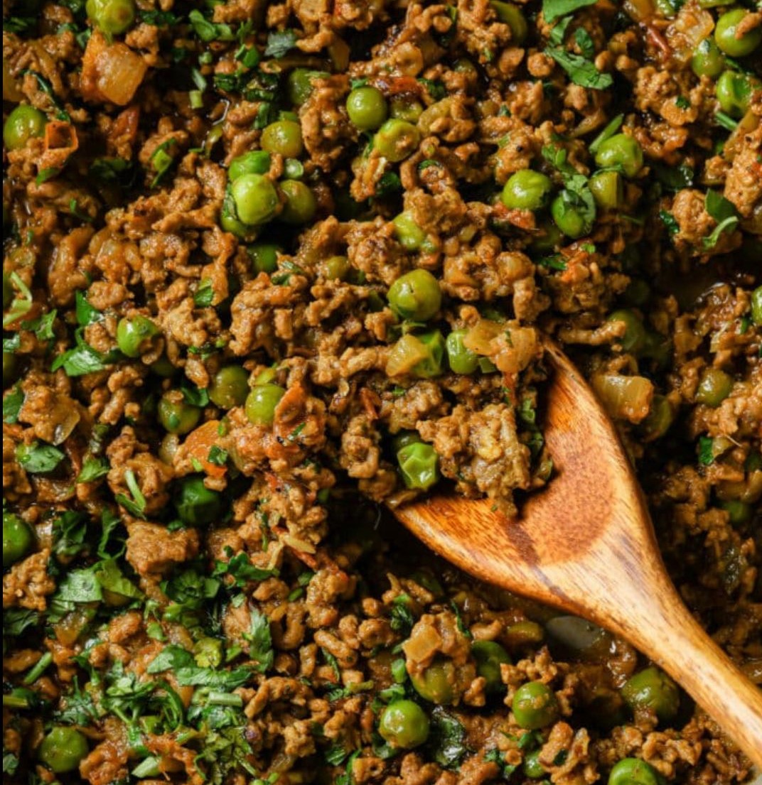 Minced lamb pan fried with onions, fresh ginger, garlic, sliced peppers, peas and fresh green chilies with a touch of chili sauce.